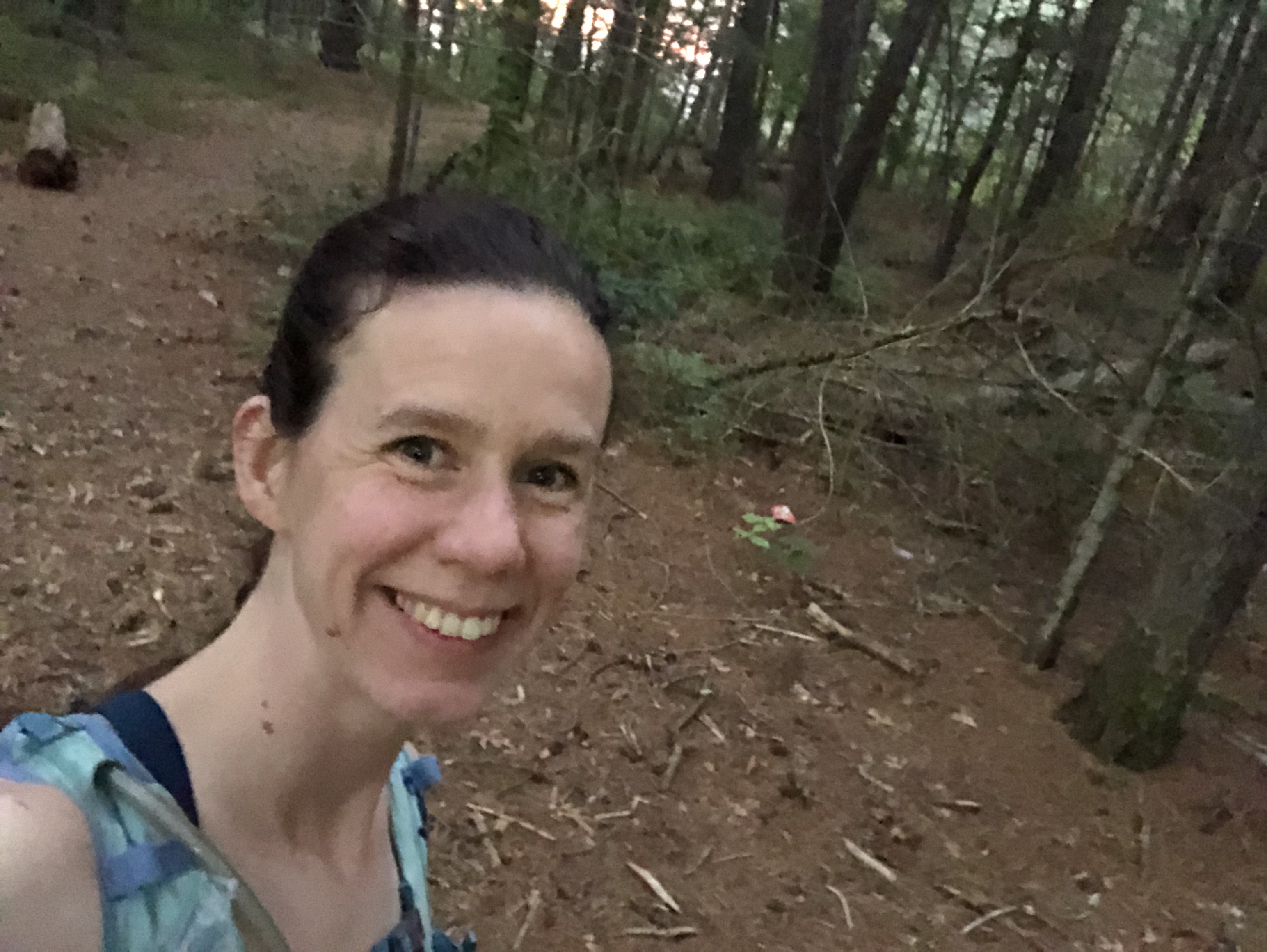 I enjoy a 22-mile run in Myles Standish Forest on a ninety degree day.