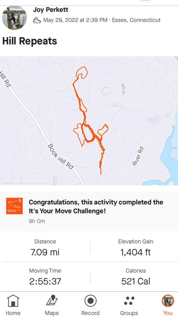 Training for hills, to be clear, meant walking up hills.