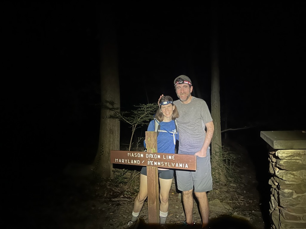 As our headlamps cut through the dark, Matt, J and I walked together to the Pennsylvania – Maryland border.