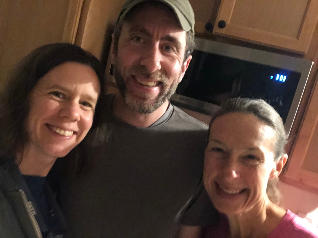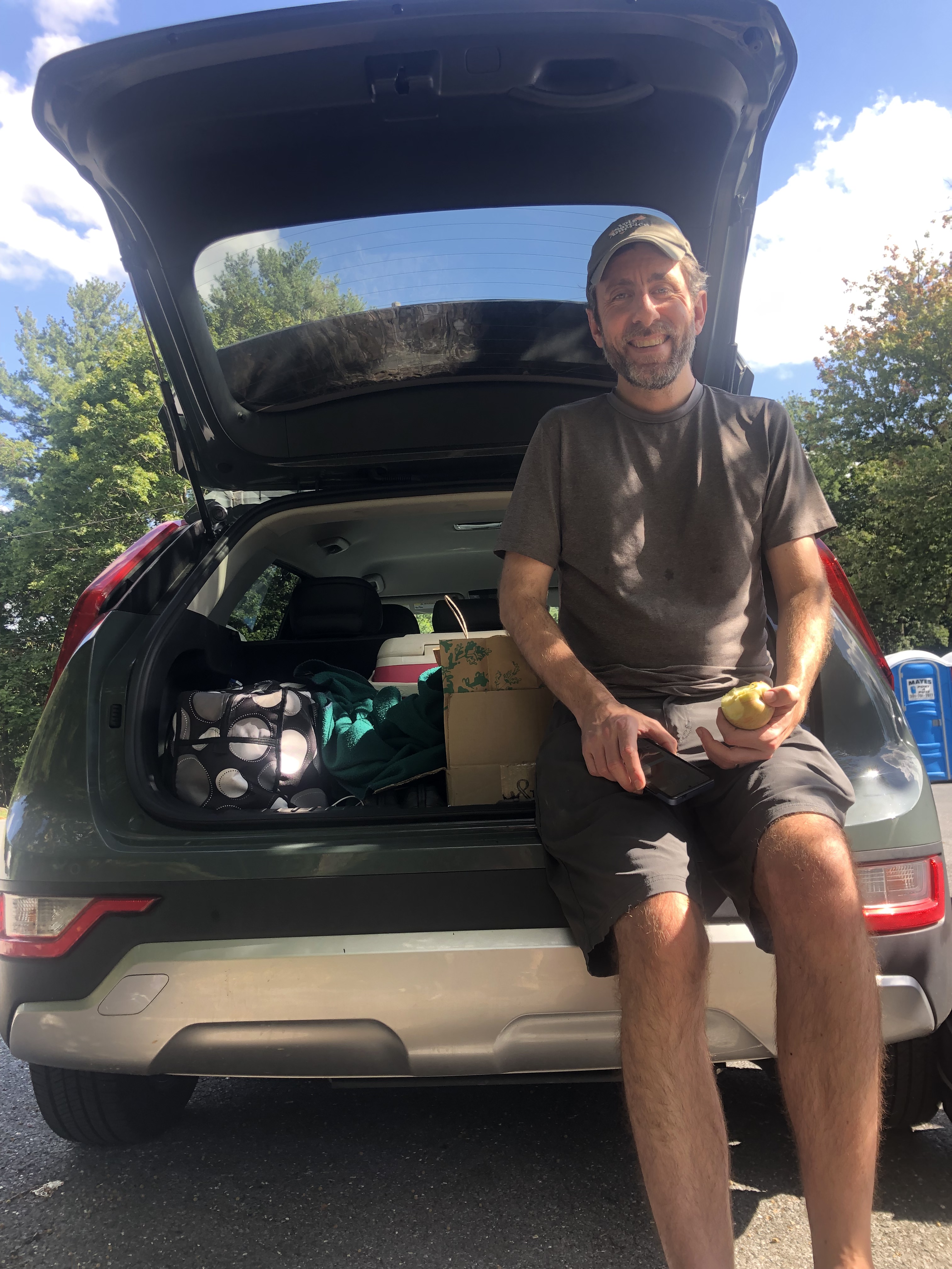 As special treat, we all enjoyed dinners from Kelley’s, a local vegan restaurant, via our cooler. Yum! I highly recommend Kelley’s. We made do by eating on small patch of grass in the middle of a parking lot.